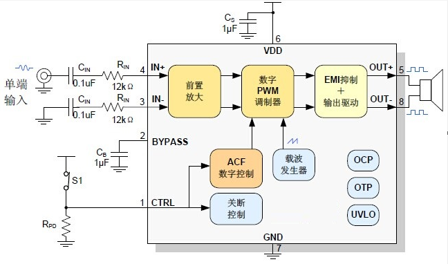 啟動(dòng)控制電平給到SD腳,到功放有輸出信號(hào)的時(shí)間差,一般越小越好,有很多收款音箱比較關(guān)注這個(gè)值