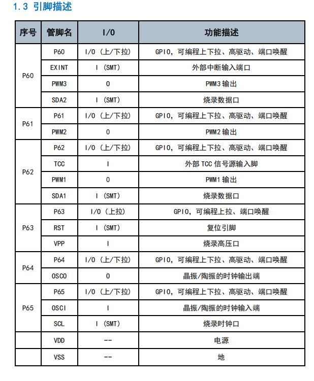 ● P63(復(fù)位引腳)可配置上拉和輸出
