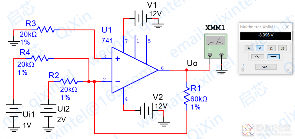 這樣,我們就設(shè)計了一個最經(jīng)典的反向比例放大器