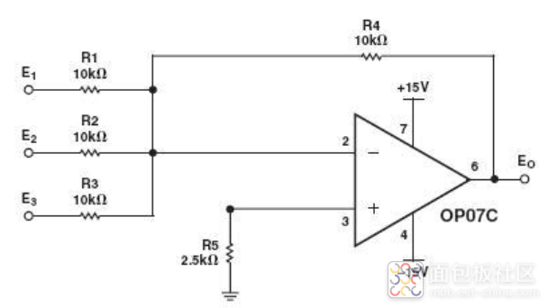 如果存在 R1=R2=R3,則上式變?yōu)?Vout=-(V1+V2),