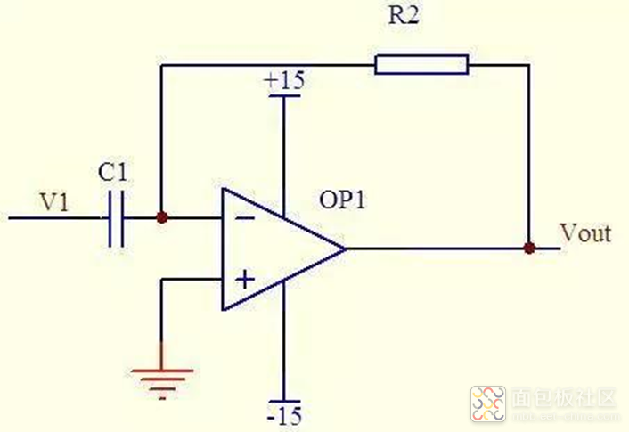 所以有:Vout = -i * R2 = -(R2*C1)dV1/dt