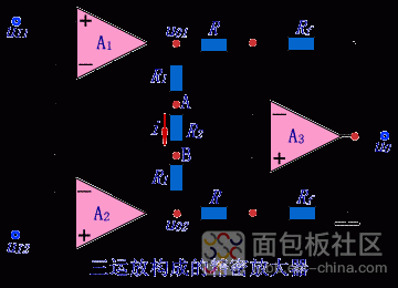為了獲得高共模抑制比,一般取Rf=R,然后根據(jù)電壓增益選擇R1、R2。
