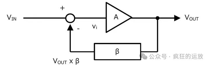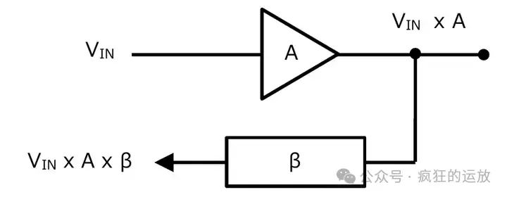 如果把反饋電路切斷,可以看到,對(duì)于一次輸入,其反饋信號(hào),就是Vin x A x β: