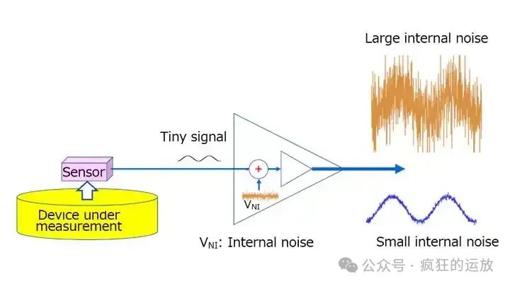 輸入端有代表噪聲源的Vnoise(上圖中Vni),還有代表信號(hào)的Vin(上圖中Tiny signal)。