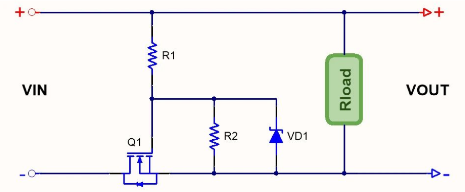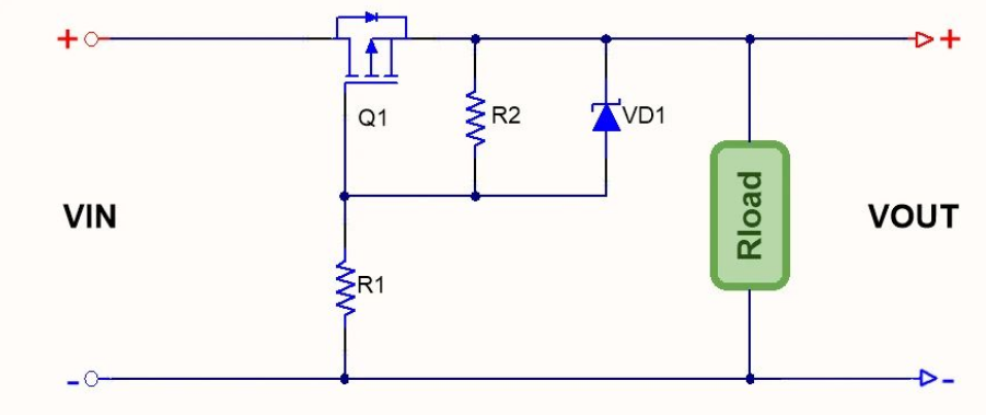 可見二極管防反接最大問(wèn)題是管壓降,越低損耗就越小。在晶體管中導(dǎo)通壓降最低的就屬場(chǎng)效應(yīng)管了,就是我們平常叫的MOS管,那如何運(yùn)用MOS管這一優(yōu)良特性設(shè)計(jì)防反接電路?如下圖所示:
