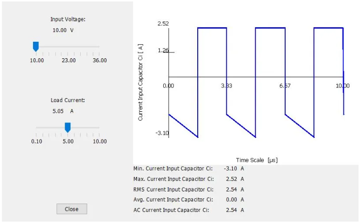 要正確指定降壓 DC/DC 轉(zhuǎn)換器的輸入電容器,您必須知道電容器中的 RMS 電流。您可以通過公式估算電流,或者更簡單地使用軟件工具(如 TI 的 Power Stage Designer)估算電流。您還可以使用此工具估算最多三個并聯(lián)輸入電容器支路中的電流,這在實際轉(zhuǎn)換器設(shè)計中很常見。