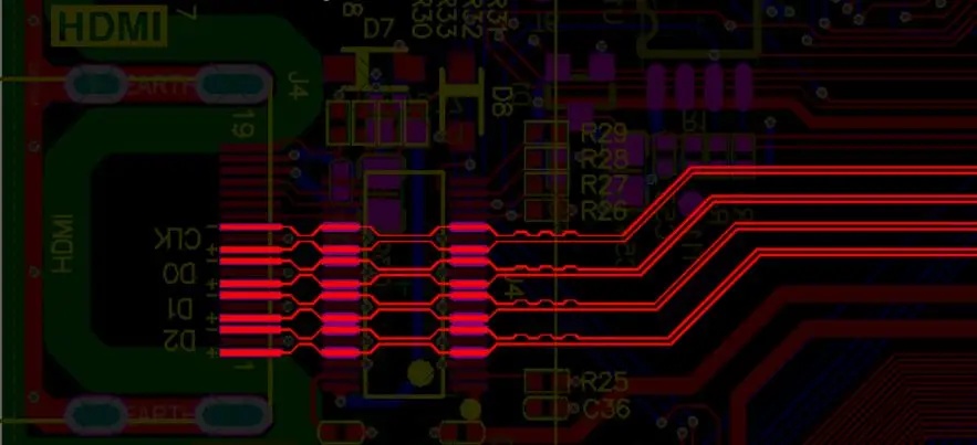 高頻領域中,信號頻率對PCB走線的阻抗值影響非常大。一般來說當數(shù)字信號邊沿時間小于1ns或者模擬信號頻率超過300M時就要考慮阻抗問題。PCB走線阻抗主要來自寄生的電容、電阻、電感系數(shù),主要因素有材料介電常數(shù)、線寬、線厚乃至焊盤的厚度等。PCB 阻抗的范圍是 25 至120 歐姆,USB、 LVDS、 HDMI、 SATA等一般要做85-100歐姆阻抗控制。