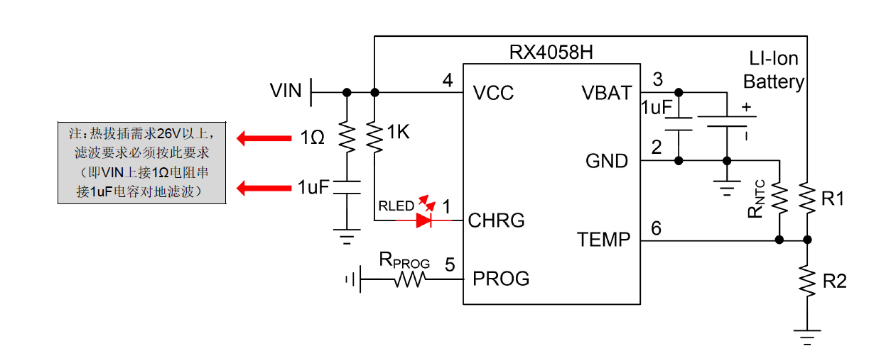 注1:PROG 充電電流設(shè)置電阻最小不能小于1.2KΩ。