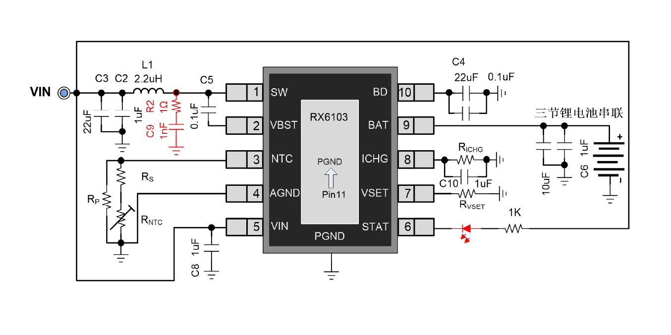 RX6103 5V USB 輸入,最大1.6A 充電電流,三節(jié)鋰電池同步升壓充電管理芯片